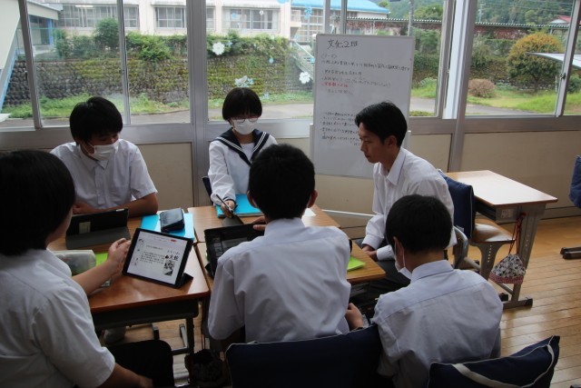 中高一貫教育として、毎年川根高校の生徒が本校を訪れ、探究学習のアドバイスをして...