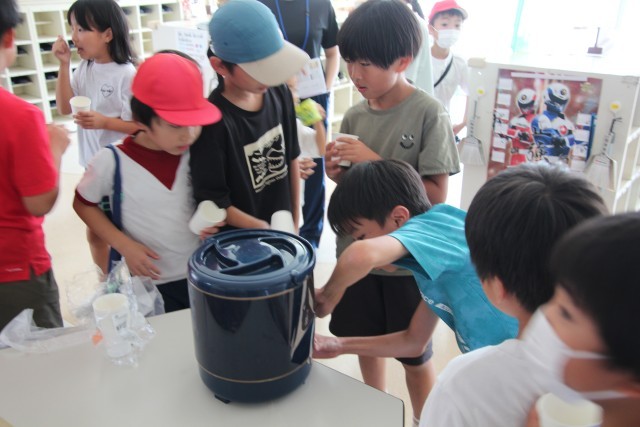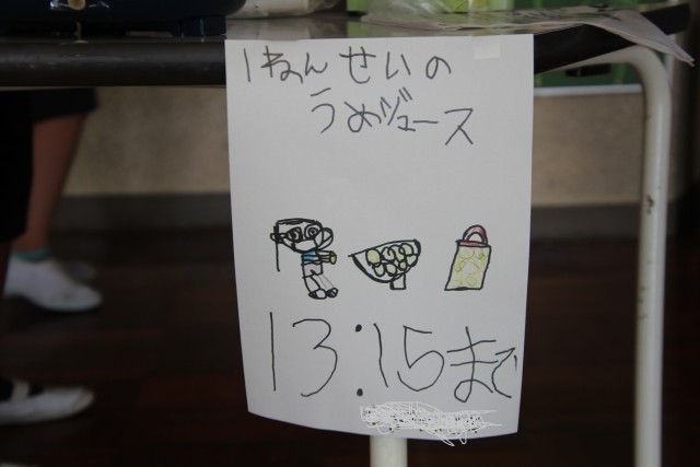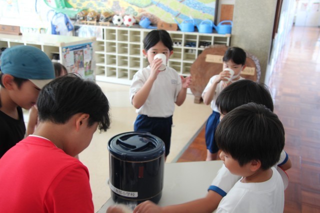 1年生が作った梅ジュースがふるまわれました。昼休みに多くの児童生徒が集まり、大好評でした。1年生の皆さん、おいしい梅ジュースをありがとう。