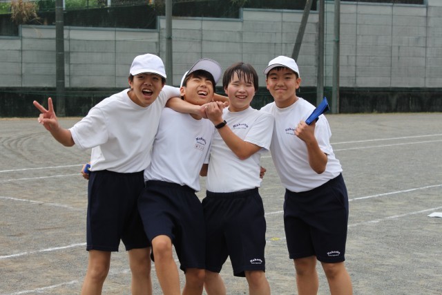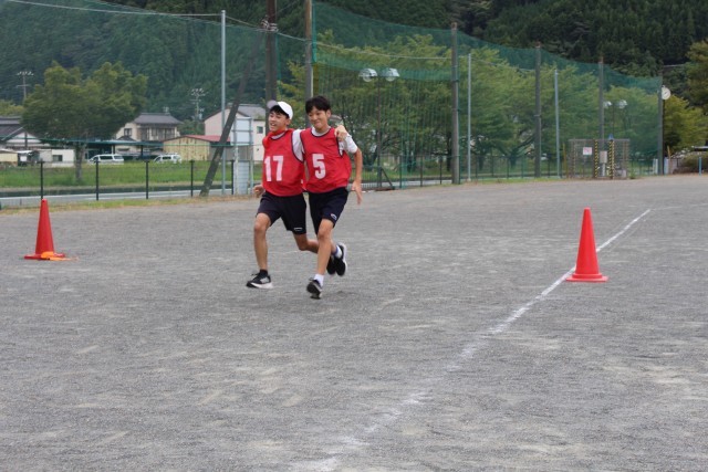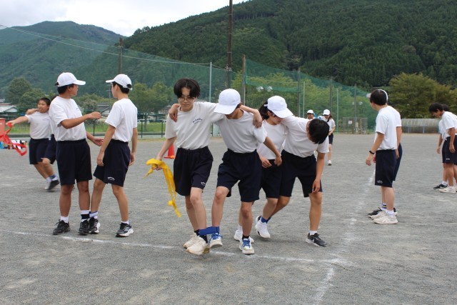 三ツ星祭スポーツの部の練習が学年ごと始まっています。今日は久しぶりの涼しい天候の中、7~9年生が練習を行いました。赤・黄・青の3色に分かれ、2人3脚や大縄の練習を行いました。