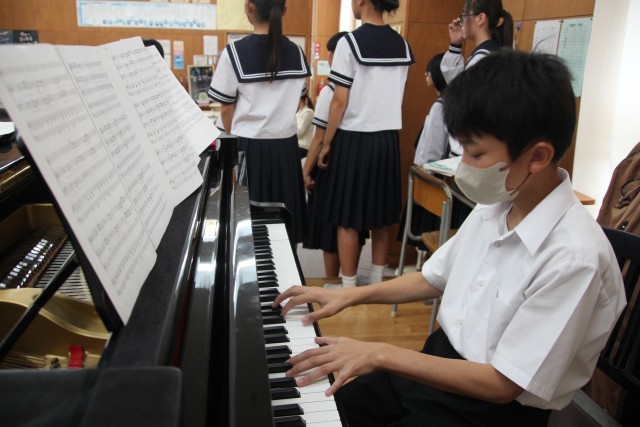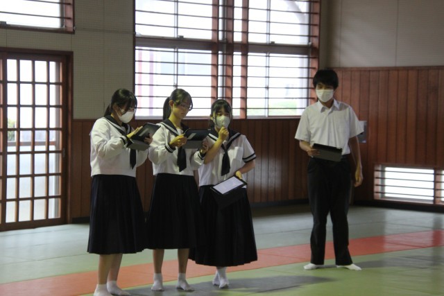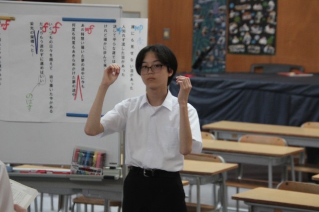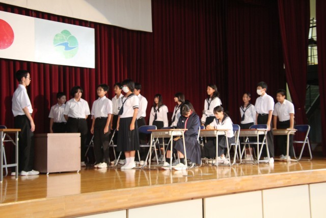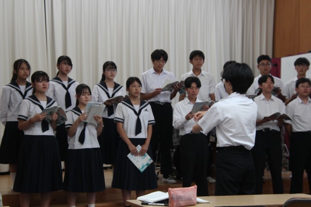 7~9年生は文化の部のステージ発表の練習を行いました。若い頃「ステージで合唱や劇を発表するのではなく、合唱や劇を通して学級の文化を発表する」と先輩教員から教わりました。ぜひまとまりのある学級文化を発表してください。学年があがるにつれ、先生からの指示は減り、9年生はほぼ全て自分たちで練習を行っていました。素晴らしいですね。