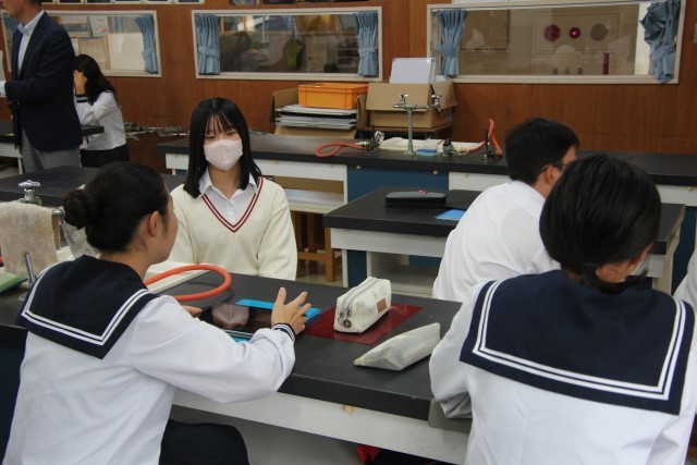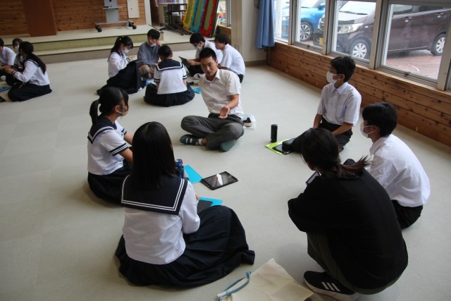 中高一貫教育として、毎年川根高校の生徒が本校を訪れ、探究学習のアドバイスをしてくれます。今年は22人もの川高生が来てくれました。各グループに入ってくれ、たくさんアドバイスをしてくれました。