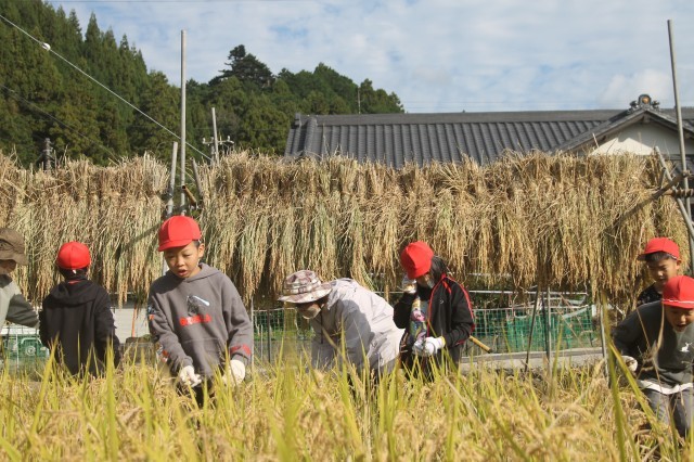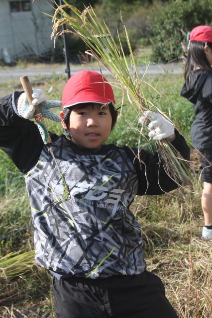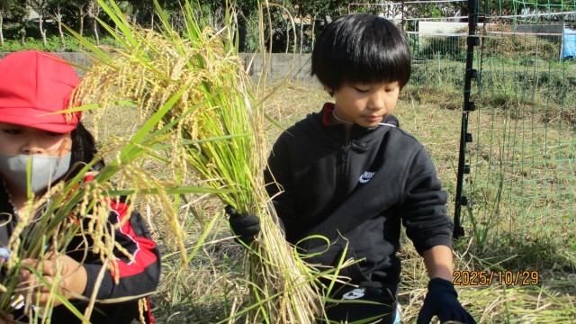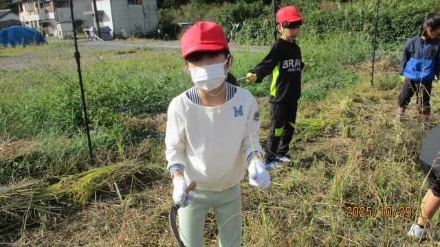 3年生が稲刈りをしました。自分たちで植えた苗が見事に生長し、実りを感じることができました。精米していただき、お米になって私たちの手元に届けていただく予定です。おいしいご飯が待ち遠しいですね。