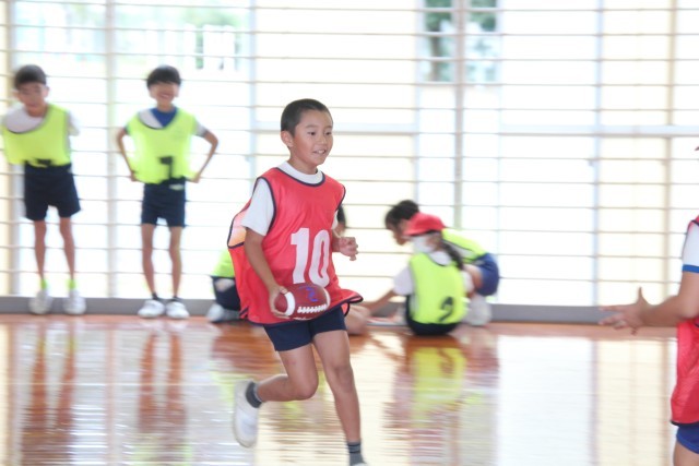 フラッグフットボールはアメリカンフットボールが起源になって生まれたスポーツです。 アメリカンフットボールの戦略をそのままに少人数かつ少スペースで 安全に楽しむことができるように開発されたスポーツです。「タックル」の代わりに、プレーヤーの両腰につけた「フラッグ」を取ることから「フラッグフットボール」という名前になりました。