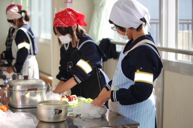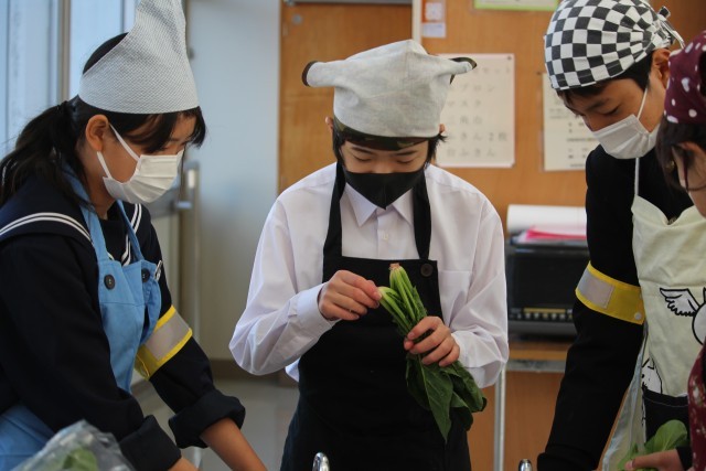 7年生は家庭科の授業でみんなが大好きな調理実習を行いました。写真を見るととてもおいしそうですね。