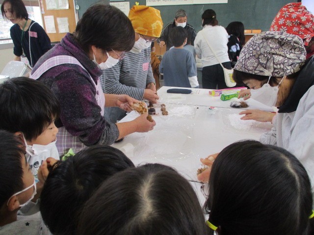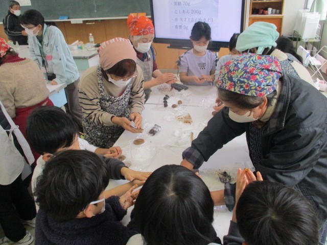 町内のみなさんを対象にした社会教育課主催の「すこやか大学」が本校で行われました。1・2年生の子供たちも一緒に活動し、お菓子作りを行いました。みなさんとても喜んでくださり、子供たちから元気をもらえたようです。