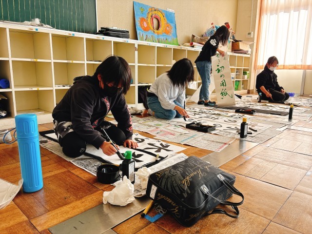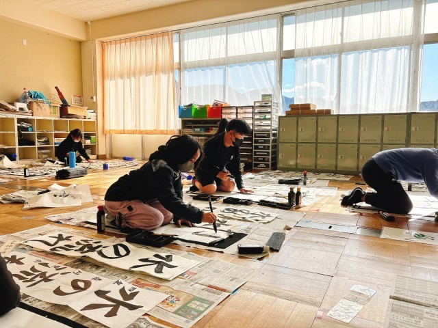 どの学年も書写の授業で書き初めを練習しています。4年生は「水の流れ」とい字を書いています。