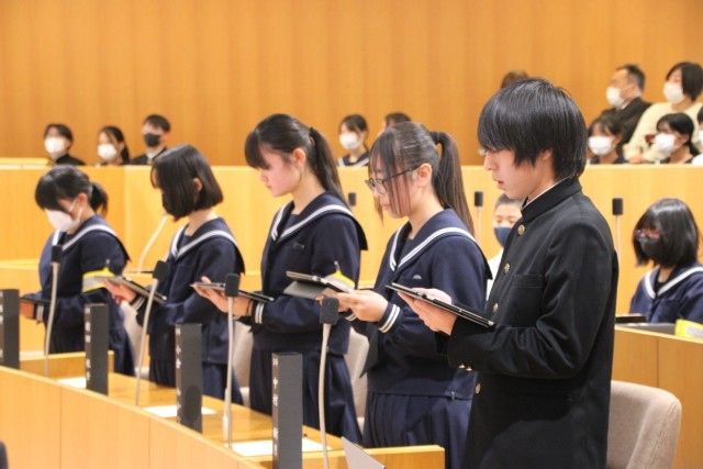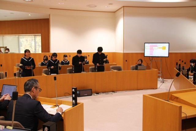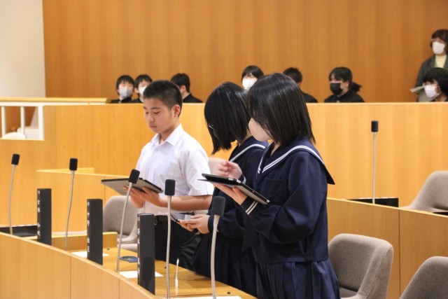 7~9年生は川根本町こども議会に参加しました。探究学習の成果を提案したり、疑問に思ったことに対し、町長さんから答弁をしていただきました。本物の議場で貴重な体験をさせていただきました。