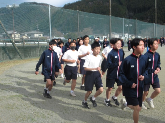 7~9年生は合同体育で20分間走を行いました。今までの自分の記録を上回ることができたでしょうか。