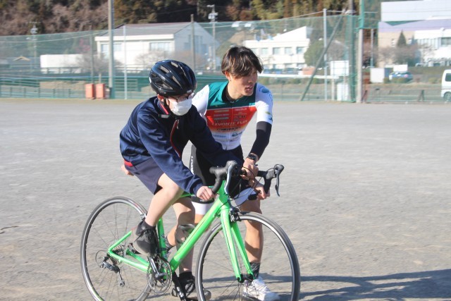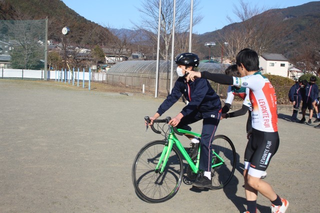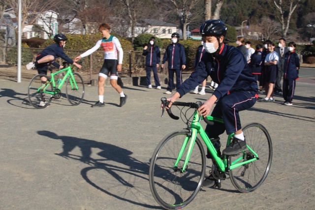 伊豆地域を中心に活動する自転車ロードレースのプロチームであるレバンテフジ静岡のみなさんが本校を訪れ、7年生と交流をしました。キャリア教育の一環として行い、お話を聞いた後、グラウンドで競技用自転車を体験させていただきました。