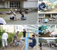 赤石太鼓を体験 3~6年生「合同音楽」 10/7