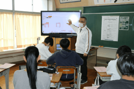 本日の4時間目、9年生は数学「三平方の定理」の導入の授業でした。数学の授業は、基本的に「マイプラン学習:単元内自由進度学習」の型で進めています。1時間目の今日は、今後の授業の進め方を聞き、その後ICT機器のアプリを有効活用して問題に取り組んでいました。今後の展開が楽しみです!