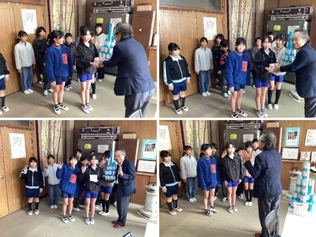 本日、4,5年生が中心となって呼びかけをして、集められた『赤い羽根共同募金』を社会福祉協議会の方に届けました。皆さんの善意は、様々な福祉活動のために役立てられます。