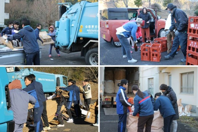 晴天の下、1月17日(土)に資源回収が予定通り実施されました。事前に資源を搬入してくださった町内業者の方、保護者の皆様、地域の皆様、そして後期課程の生徒たち、御協力ありがとうございました。