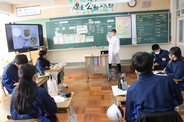 本日の授業より 1/20 公開日 2026/01/20 更新日 2026/01/20 お知らせ 本日3時間目の授業の様子です。7年生は栄養教諭を招いて家庭科「食と栄養」に関する授業。9年生は数学「三平方の定理」を単元内自由進度学習の形で進めていました。 +2