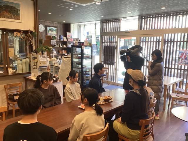 7年生は総合的な学習の時間を使って「カフェうえまる」さんの協力の下『商品開発』に力を注いできました。その成果が認められたのか、このほどSBSテレビの取材を受けました。地元の食材を生かしたメニューとして7年生が考案したのは、○天丼○ゆずゼリー○ブルーベリーマドレーヌの3種類。このときの模様は、1/31(土)9:20頃SBS静岡放送の番組「しず推し!」にて放送予定です。なお、2/1(日)からはYouTubeでも配信される予定なので、ぜひ御覧ください!