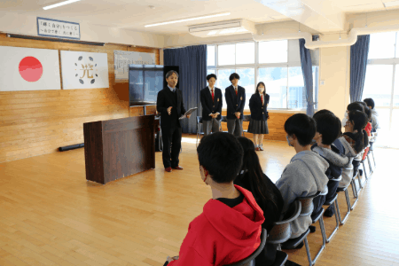 清掃集会が行われました。 6/2 公開日 2025/06/02 更新日 2025/06/02 お知らせ 本日の昼休み、環境委員会企画の『清掃集会』が全校児童生徒参加で行われました。日々行っている「清掃活動」について、もう一度見直し、みんなできれいな学校づくりを目指していこうというものです。クイズを交えて環境委員がわかりやすく説明し、その後清掃分担ごと分かれて、今後の取組について話し合いました。